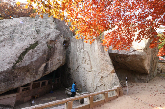 충북 보은군에 자리한 속리산 법주사는 신라 진흥왕 때 창건된 1500년 내력의 고찰이다. 특히 가을 단풍이 아름다워 가을이면 인산인해를 이룬다. 주차장에서 법주사까지 5리에 펼쳐진 '오리숲길'은 다양한 활엽수와 아름드리 침엽수가 어우러져 운치 있는 가을 풍광을 자아낸다. 맨발로 걸을 수 있는 황톳길도 있어 건강 산책도 즐길 수 있다.