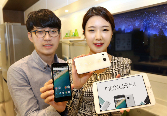 LG유플러스(부회장 이상철)가 21일 구글의 레퍼런스 스마트폰 LG 넥서스5X를 출시했다. LG 넥서스5X는 16GB와 32GB 두가지 모델로 출시되고, 색상은 카본(검정), 쿼츠(흰색) 등 2가지다. 출고가는 16GB 모델은 47만5200원 32GB 모델은 53만5700원으로 책정됐다. LG유플러스에 따르면 고객이 LG 넥서스5X 16GB 모델로 'New 음성무한 Video 데이터 100' 요금제를 선택하면 242,000원 공시지원금에 추가 지원금(15%) 36,300원을 더하면 20만원 이하로 구입이 가능하다.