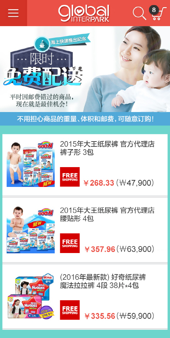 인터파크(www.interpark.com)의 해외 역직구 사이트 글로벌 인터파크(www.globalinterpark.com)가 중국 현지 해상배송을 이용해 상품 부피와 무게에 상관없이 부담 없는 가격으로 구매 가능한 '해상 간이통관 시스템'을 지난 20일 오픈했다.