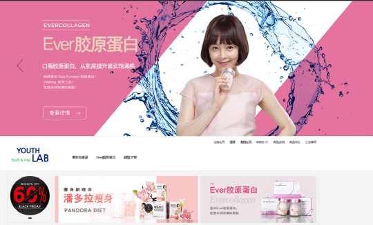 유스랩은 중국 시장의 연이은 러브콜을 받아 중국어 쇼핑몰(cn.youthlabmall.com)도 공식 론칭했다. 최근 약 20조원 규모로 성장한 중국 건기식 시장이지만 불량품과 과장 광고에 실망한 중국고객들이 한국의 뷰티 관련 제품에 관심이 높다. 특히 식약처로부터 개별 인정을 받은 2중 기능성 다이어트 제품 '판도라다이어트', 먹는 콜라겐 '에버콜라겐UV케어' 등에 대한 반응이 뜨겁다.