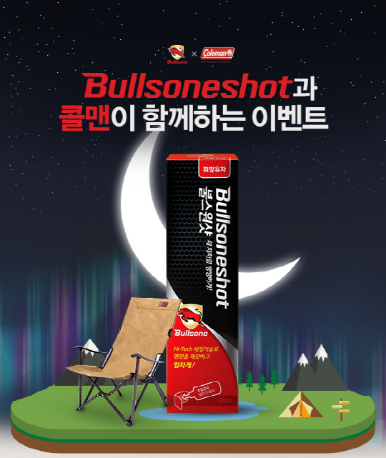 국내 자동차용품 전문기업 불스원의 엔진세정제 브랜드 '불스원샷'이 가을 캠핑철을 맞아 아웃도어 브랜드 콜맨과 함께 '불스원샷과 콜맨이 함께하는 캠핑용품 증정 이벤트'를 진행한다.