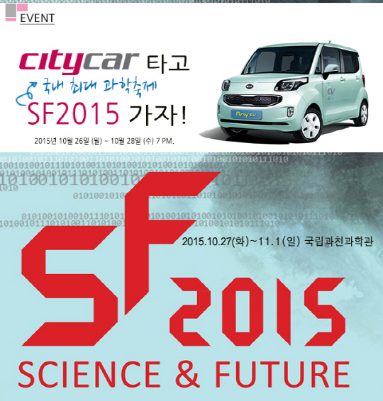 전기차 카셰어링 기업 씨티카는 '친환경 전기차 씨티카 타고 국립과천과학관 SF 2015 가자' 행사를 실시한다고 26일 밝혔다.