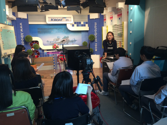 서울 천호중 방송부 학생 등 37명이 초청된 이날 행사에서 경정 방송팀은 방송실 및 스튜디오 견학, PD, 아나운서, 카메라맨, 엔지니어 등 관련 업무 교육을 실시했다. 또 실제 뉴스진행, 리포터 및 방송기술 체험, 카메라 촬영, 방송편집 등 방송전반에 관한 실습도 펼쳤다.