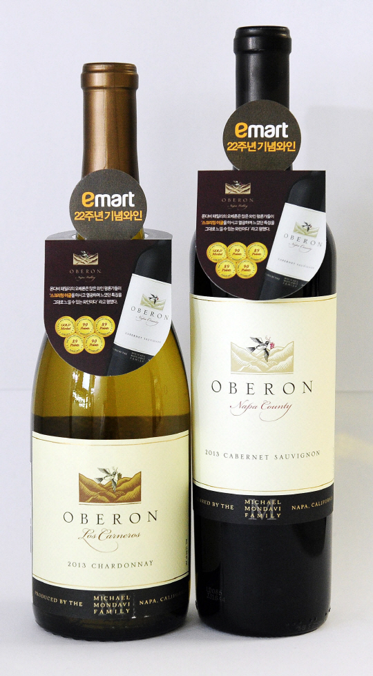 이마트 개점 22주년 와인 '오베론 까버네쇼비뇽(750㎖)'은 3만9800원, '오베론 샤도네이(750㎖)'는 3만2800원이다. 국내 유통되던 비슷한 품질의 나파벨리 와인이 7~8만원 이상에 판매되는 걸 감안하면 반값 수준이다. 국내에 나파벨리 마이클 몬다비의 '오베론'을 선보이는 건 처음이지만,미국 현지 소매가격이 25달러 내외로 물류비와 관세 등 유통 비용을 제외하면 현지 가격 수준에 판매되는 셈이다. 이마트는 나파벨리 프리미엄 와인을 3만원대에 준비하기 위해 지난 1년간 미국 나파벨리의 주요 와이너리를 찾아 다녔으며, 그 중 미국 와인의 선구자인 몬다비 가문의 일원인 마이클 몬다비 와이너리의 '오베론'을 발굴했다. 오베론 까버네쇼비뇽은 드라이하면서도 풍부한 풍미가 특징으로 스테이크와 완벽한 조화를 이루는 와인으로 정평이 나있다. 미국 주요 레스토랑의 선호 와인은 물론, 와인 평론가들로부터 큰 호평을 받아온 와인이다.