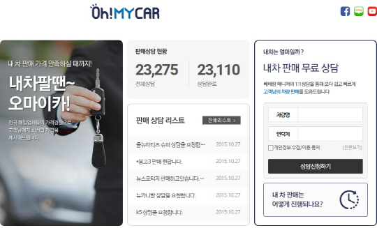 홈페이지(http://oh-mycar.com) 및 고객상담센터(1600-8451)를 통해 차량명, 연락처와 같은 간단한 정보만 남기면 전국 200여명의 제휴딜러로부터 차량 견적을 받아 상위 3개업체의 정보를 고객에게 알려주며, 원하는 경우 무료 방문평가 서비스도 제공한다.