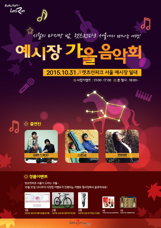 경기도 과천의 렛츠런파크서울(구 경마공원)이 포크 음악으로 10월의 마지막 밤을 수놓는다.