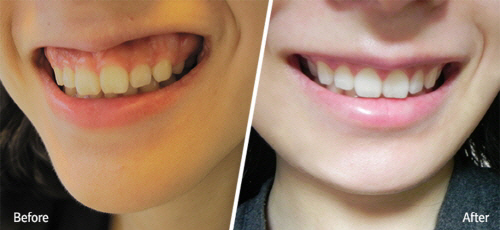그렇다면 모두가 인정하는 예쁜 웃음의 이상적인 비율은 무엇일까. 가장 이상적인 웃음은 치아의 세로와 가로 비율이 1:0.7~0.8정도이며 보이는 잇몸이 약 2mm미만일 때라 할 수 있다. 그리고 이는 치아교정이 아닌 잇몸성형을 통해 충분히 교정 가능하다.