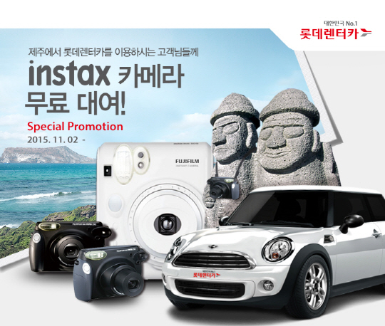 롯데렌터카(옛 kt금호렌터카)는 11월 2일부터 롯데렌터카 제주 오토하우스 차량 대여 고객을 대상으로 '인스탁스 카메라 무료 대여' 서비스를 도입한다고 30일 밝혔다.
