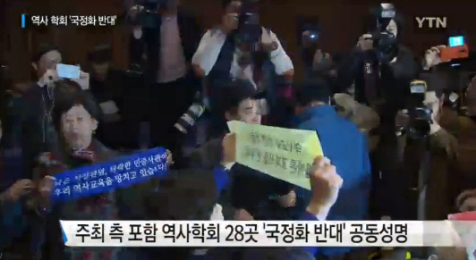 전국역사학대회에 참여한 전국역사학대회협의회 소속 학회와 역사 관련 학회 등 28개 역사학회가 역사교과서 국정화 철회와 국정교과서 제작 불참을 촉구하는 공동 성명서를 발표했다.