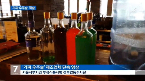 최근 '우주술'이 젊은이들한데 인기를 끌자 인체에 유해한 색소로 '가짜 우주술'을 만들어 판 일당이 검찰에 붙잡혔다.