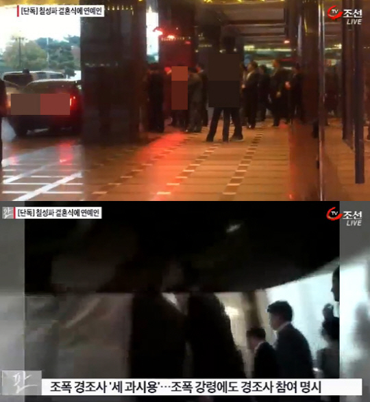 이날 결혼식이 열린 호텔 안팎은 조폭을 연상케하는 건장한 체구의 남성들이 점령했다. 검정색 고급 세단들이 도착할 때는 남성들이 허리를 90도 가까이 굽혀 인사했다.