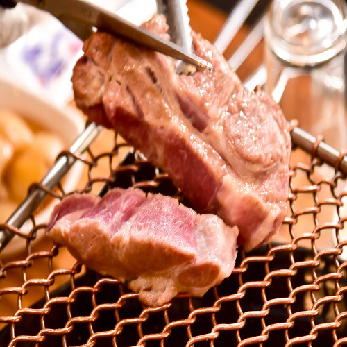 '돼지목살 스테이크 소금구이'는 일반 목살과는 다르게 목살을 굉장히 두툼하게 스테이크모양으로 만들어 소금을 뿌려 참 숯 화로 위 구리석쇠에서 구워내므로 별다른 간이나 반찬이 없이도 한입 물면 가득한 고기 맛을 느낄 수 있어 인기만점.