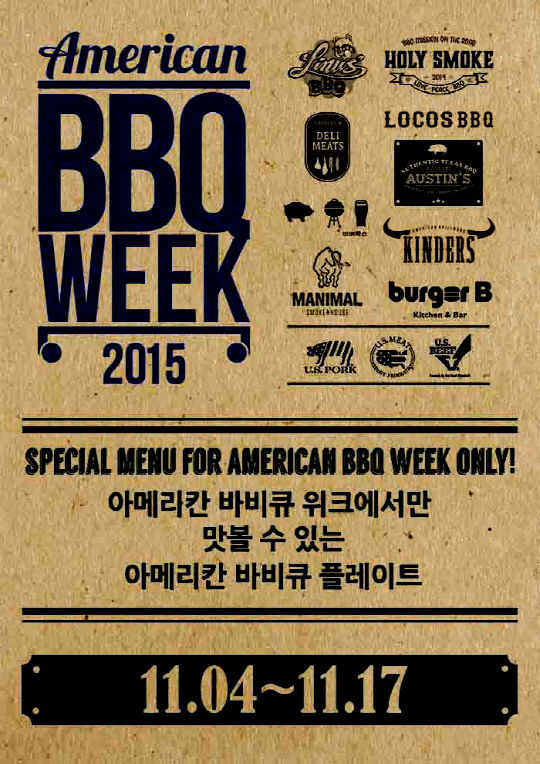 미국육류수출협회는 국내 최초 바비큐 레스토랑 주간인 '아메리칸 바비큐 위크'를 통해 다양한 바비큐 레스토랑과 특색 있는 바비큐 메뉴를 소개할 예정이다. 이번 '아메리칸 바비큐 위크'에는 라이너스바비큐, 로코스비비큐 (이태원점, 대전 갤러리아점, 판교 현대백화점점, 강남 신세계점), 매니멀 스모크하우스, 바베쿡스, 버거비&빌스트리스트 (광화문점, 코엑스몰점, 홍대점, 타임스퀘어점, 명동점), 오스틴 스모크하우스 (강남점, 홍대점), 존쿡 델리미트 (압구정점, 정자점, 광교점, 경리단점), 킨덜스, 홀리스모크 등 국내의 소문난 바비큐 레스토랑 9곳, 총 20개 지점이 참여해 아메리칸 바비큐 위크에서만 만나볼 수 있는 특별 메뉴인 '아메리칸 바비큐 플레이트'를 선보인다.