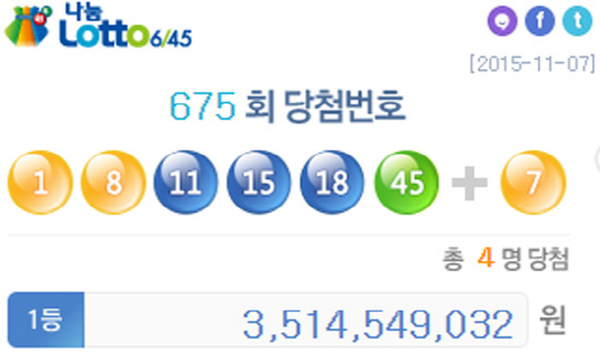 당첨번호 4개를 맞힌 4등(고정 당첨금 5만원)은 8만8천118명, 당첨번호 3개가 일치한 5등(고정 당첨금 5천원)은 141만5천830명이다. <스포츠조선닷컴>