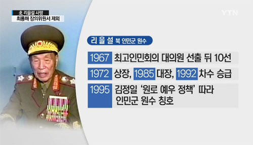 특히 지난 1995년, 일반 군인이 오를 수 있는 최고 계급인 '인민군 원수' 칭호를 받았으며, 김씨 일가를 제외한 3명의 역대 인민군 원수 가운데 유일하게 생존해 있던 인물이기도 했다.