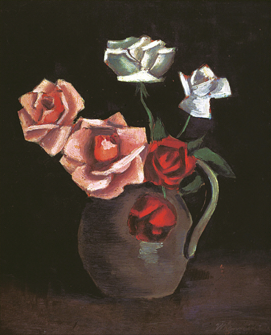 "1945년 해방을 기념하여 그린 김환기 화가의 '장미꽃(1945)'은 만개한 꽃을 통해 광복의 기쁨을 표현함과 동시에 어두운 배경으로 일제강점기의 암울함을 동시에 보여주고 있는 심오한 예술작품이며 아마도 추상화가로 알려진 김환기 화가의 초기 구상작품으로 유일하게 현존하고 있는 것이 이 '장미꽃' 작품입니다."