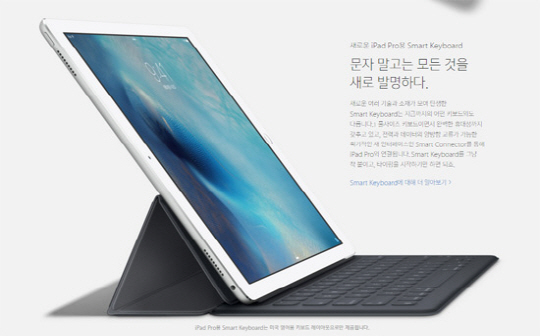 아이패드 프로와 이를 위한 펜 방식 입력 도구 '애플 펜슬', 커버 겸용 자판 '스마트 키보드' 주문을 온라인으로 받는다.