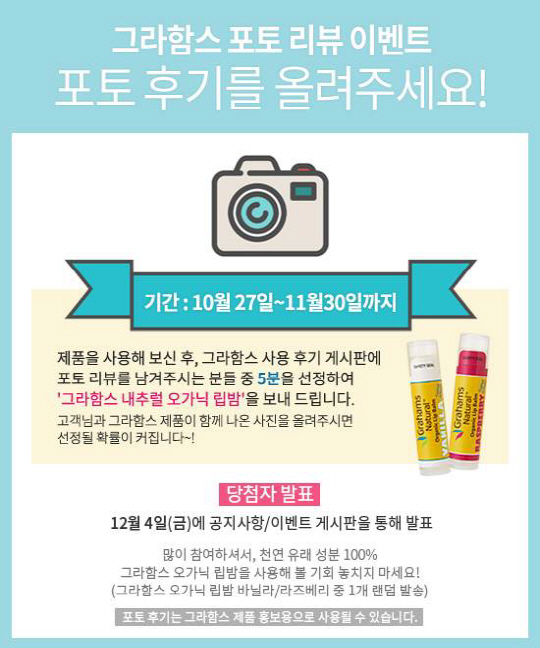 호주 대표 천연성분 스킨케어 브랜드 그라함스가 30일까지 공식 홈페이지에서 포토 리뷰 이벤트를 진행한다.