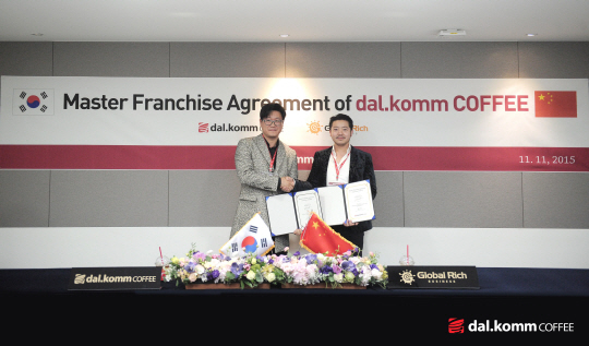 달콤커피(dal.komm COFFEE)는 11일 중국의 글로벌리치(Global Rich Business Management Co.,Ltd.)사와 마스터 프랜차이즈 계약을 체결하고 중국과 홍콩, 마카오에 매장을 오픈한다고 12일 밝혔다.