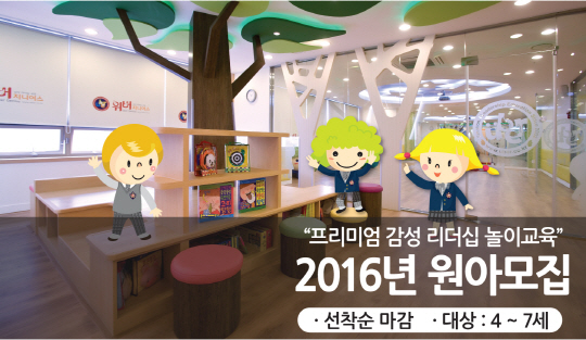 ㈜미래엔에듀케어(대표 민양규)의 감성 리더십 놀이교육 기관 '위버지니어스'가 4~7세를 대상으로 하는 2016년 신입 원아 모집을 실시한다.