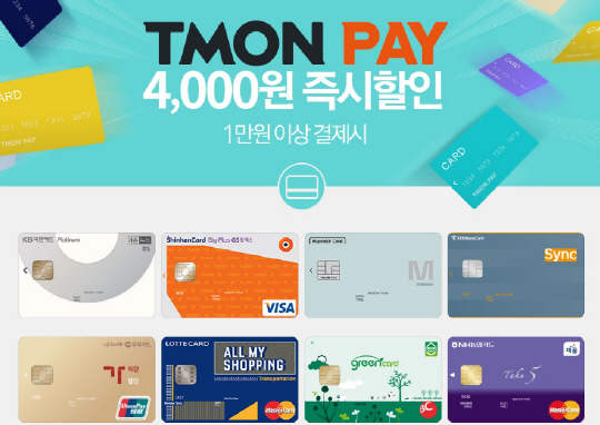 티몬페이는 티몬 모바일 앱에서 최초 1회 카드정보와 6자리 비밀번호를 등록하면 기존 카드 결제 시 필요했던 '공인인증서' 설치 등 복잡한 과정 없이 단 3초만에 결제를 할 수 있는 서비스다. 신한, 롯데, 비씨, 국민, NH, 하나, 현대카드를 이용하는 고객이라면 티몬페이로 1인당 1회에 한해 4000원을 즉시 할인 받을 수 있다.