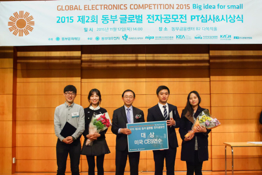 올해 2회째를 맞는 동부 글로벌 전자 공모전은 최근 가전업계의 이슈로 떠오르고 있는 'IoT 융복합 스마트 생활가전'과 '헬스케어 제품' 아이디어 등 2개 부문에 대해 지난 4월부터 응모작을 공모했으며, 총 800여개 팀이 참가해 경합을 벌였다.
