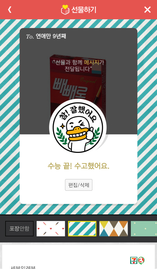 카카오는 빼빼로데이(11/11) 에 맞춰 다양한 프로모션을 준비 했다. 빼빼로 전용 포장지와 메시지 카드를 제공하고, 친구들과 관련 프로모션을 공유하면 300 카카오포인트를 지급하는 이벤트를 진행했다. 대학수학능력시험 시기에 맞춰 수험생들을 위한 선물과 응원 메시지를 보낼 수 있는 기회로도 사용할 수 있어 인기를 끈 것으로 분석된다.