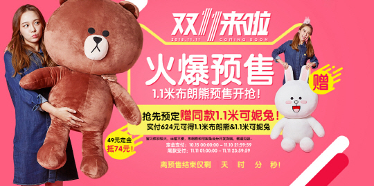 라인프렌즈(LINE FRIENDS)가 중국판 블랙 프라이데이로 불리는 11일 '광군제' 당일, 중국 최대 온라인 쇼핑몰인 알리바바 '티몰'에서 중국 외 브랜드 최초로 완구류 판매 1위에 올랐다고 밝혔다.