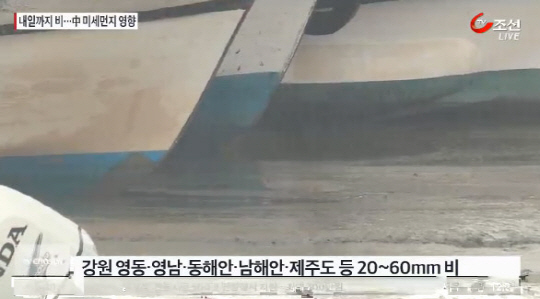 오늘 밤까지 예상강수량은 강원 영동과 영남.동해안.남해안. 제주도 등이 20~60mm로 전라도와 영남 내륙, 울릉도.독도는 10~40mm다.