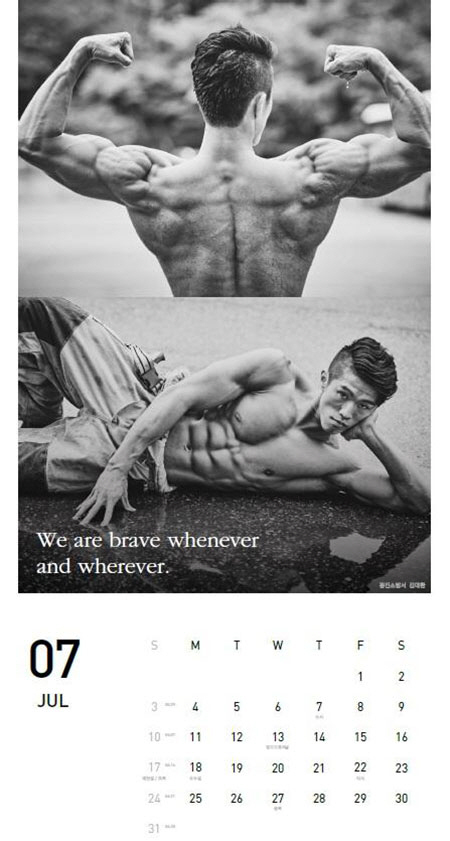 13일 서울시는 소방관 14명이 2016년도 달력 제작에 참여했다고 밝혔다. 서울시 몸짱소방관 선발대회 출신 현직 소방관들이 헬멧과 방화복을 벗고 근육질 몸을 드러내며 반포 수난구조대 등에 모여 포즈를 취한 것.