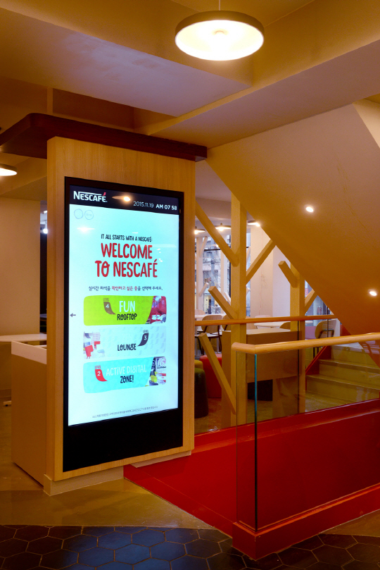 매장 입구에서 여유 좌석과 이벤트 정보를 제공하는 '웰커밍 월'과 소비자들이 인스타그램, 페이스북 등을 통해 업로드 한 네스카페 이태원점의 이미지들을 공유하는 '커뮤니티 월' 등 매장 곳곳에 디지털적인 재미를 더했다. 또한 '네스카페 글라스'를 이용해 네스카페 커피의 생산공정을 360도 특수 촬영으로 만든 네스카페 플랜 비디오도 감상할 수도 있다.