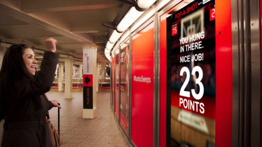 미프로농구협회(NBA) 공식 후원사인 금호타이어는 지난 2월 NBA 올스타전 기간 동안 유동인구가 많은 세계적 관광지인 뉴욕 타임스퀘어의 지하철 역에 동작인식 스크린 설치물을 설치해 좋은 반응을 얻었다. 터치 스크린을 통해 농구공 대신 타이어로 프리드로우를 하고, 뉴욕 닉스의 간판 스타인 카멜로 앤서니(Camelo Anthony)의 실물크기 사진과 기념 사진을 찍는 내용인데 이 기간 동안 SNS 등의 통합마케팅으로 약 4억 6000만 건의 금호타이어 브랜드 노출과 500만 건의 소셜미디어 공유/참여 활동이 이루어졌다.