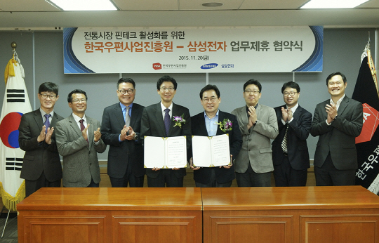 삼성전자가 20일 미래창조과학부 산하 한국우편사업진흥원과 전통시장 활성화를 위한 핀테크 간편결제 사업 업무 협약을 체결했다고 밝혔다.