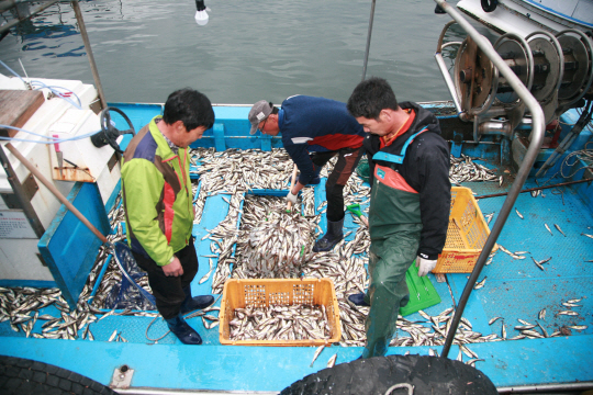 align='left" bgcolor='#ffffff" class='caption'>물치항에서 아이들이 도루묵 그물떼기 체험을 하고 있다.