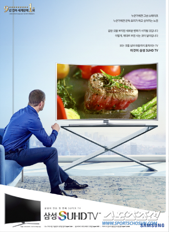 삼성전자는 선도적인 기술이 집약된 삼성 SUHD TV로 TV 부문에서 삼성전자가 벌써 9년째 세계시장에서 최고 자리를 유지, 내년이면 10년 연속 세계판매 1위라는 타이틀을 앞두고 있습니다. 삼성전자 TV를 사랑해주시는 많은 소비자들에게 감사드리며 향후 더 좋은 제품, 더 좋은 광고로 보답할 수 있도록 노력하겠습니다.