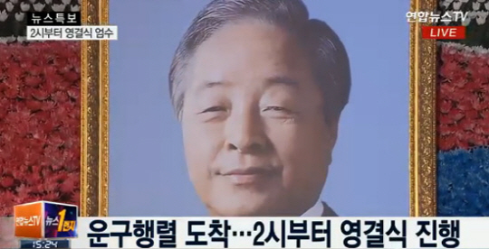 이날 1시 57분께 김 전 대통령 운구행렬이 국회의사당으로 들어서자 곳곳에서 탄식과 흐느낌이 터져나왔고, 김동건 전 아나운서의 사회로 영결식이 시작됐다.