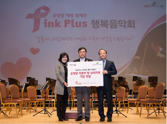 이번 음악회에서는 유방암 환우 및 가족, 캠페인에 동참하는 협력회사 직원, 고객 등 1000여명을 초청했으며 금난새 감독이 지휘하는 뉴월드 필하모닉 오케스트라가 연주를 선보였다. 핑크플러스 행복 음악회는 환우와 환우 가족이 음악을 통해 힐링하고, 캠페인에 참여하는 협력사와 고객에 대한 감사 의미를 담았다. 음악회에서 국립암센터에 '유방암 환우 심리치료 기부금' 전달을 통해 소외계층 유방암 환우의 심리 치료를 지원한다.