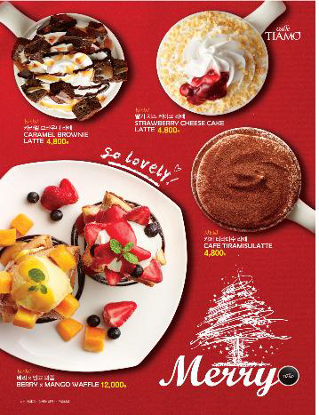 카페띠아모가 겨울 시즌을 맞아 크리스마스 케이크를 연상시키는 라떼 음료 3종과 트리를 닮은 베리망고 와플을 새롭게 출시했다고 1일 밝혔다. 선보이는 음료 3종은 크리스마스 케이크를 모티브로 겨울 대표 메뉴인 라떼를 접목한 트렌디한 제품이다. 일명 '크리스마스 케이크 시리즈 라떼'다. 카페티라미수 라떼, 딸기 치즈케익 라떼, 카라멜브라우니 라떼 등이다.