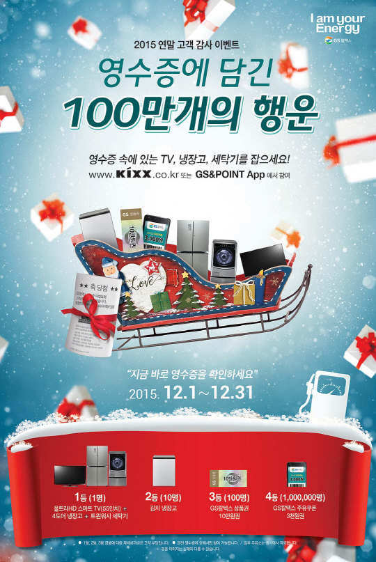 GS칼텍스(대표이사 허진수 부회장)가 연말을 맞아 결제하고 받은 영수증으로 푸짐한 경품을 받을 수 있는 '연말 감사 이벤트'를 진행한다.
