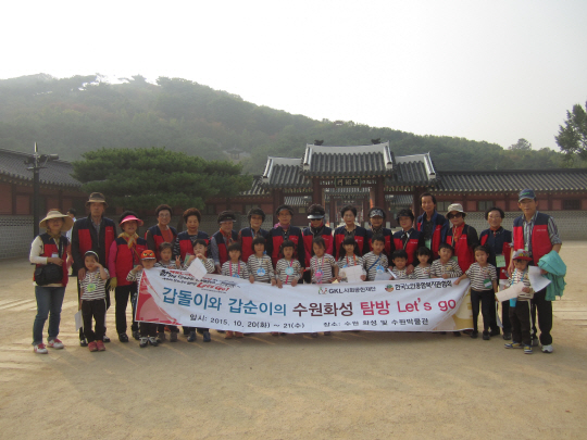 경북 예천군노인복지관 어르신들과 예천성심어린이집 아동 각 15명씩 1:1 짝을 지어 조선 정조 임금이 부모에 대한 효심과 축성을 위해 다양한 첨단과학을 동원했던 그 역사적 현장을 살펴보기 위해 경기도 수원 화성을 찾았던 것.