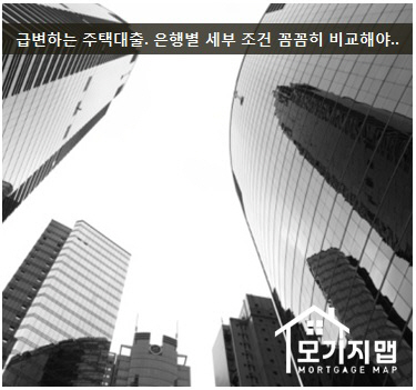 은행별 아파트담보대출금리비교 사이트 '모기지_맵'(www.mo-map.co.kr / 1544-7453)은 전 금융권(KB국민은행, 우리은행, 신한은행, 하나은행, 외환은행, NH농협은행, 기업은행, SC제일은행, 저축은행, 보험사, 캐피탈 등)에서 제공하는 부동산담보대출 조건, 주택구입자금대출, 전세자금대출 조건, 빌라/상가 담보대출, 후순위아파트담보대출, 아파트담보대출갈아타기 등의 조건과 한도를 무료로 상담받을 수 있으며, 부동산을 통한 재테크 상담 및 가계부채 진단을 위한 대출이자계산기를 제공한다.
