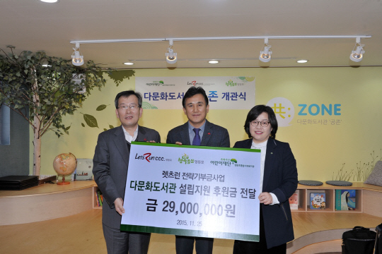 한국마사회 렛츠런문화공감센터(렛츠런CCC)영등포(지사장 송철희)가 지난달 25일 다문화도서관 건립을 위해 2900만원의 후원금을 전달했다. 이번 후원금은 두 달 간의 공사 끝에 개관한 다문화도서관 '공존(共Zone)'의 내부시설공사비 및 도서구입 지원에 사용된다.