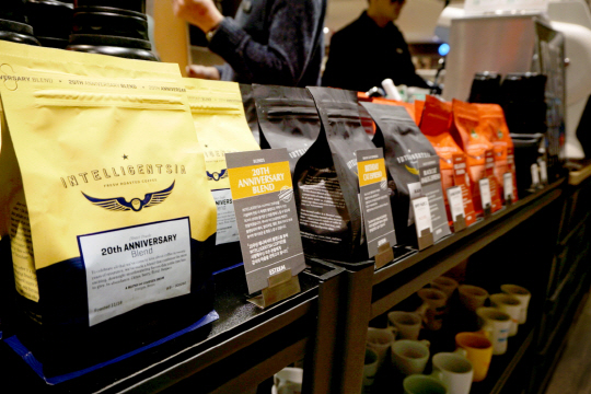 이스팀은 인텔리젠시아 20주년 기념으로 한정 판매하는 원두와 머그컵을 판매한다. 시그니처 블렌드를 사용한 다양한 커피 메뉴를 선보이며 '브루잉' 방식으로 추출해 커피의 풍미를 더욱 잘 느낄 수 있는 브루 커피에 한해서 할인 판매한다.
