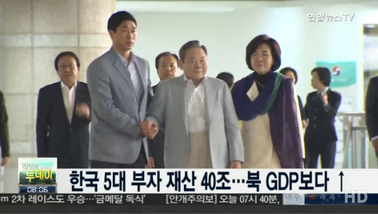 한국 최고 부호 5명의 재산 합계가 40조원으로 북한의 지난해 국내총생산(GDP)보다 많은 것으로 나타난 가운데, 한국 순위에 대한 네티즌의 관심이 뜨겁다.