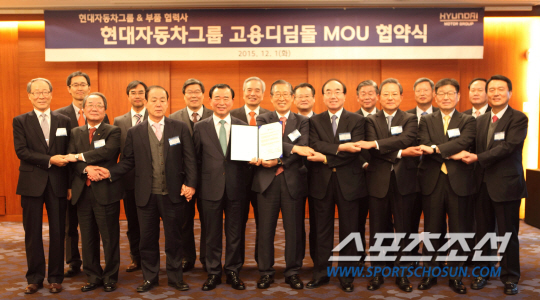 한편, 현대자동차그룹은 지난 1일, 경기도 화성의 롤링힐스에서 현대차그룹 박광식 부사장, 현대·기아차 협력회 이영섭 회장, 1차 부품 협력사 대표들이 모인 가운데 청년 일자리 창출 및 협력사 우수 인재 유입을 통한 경쟁력 확보와 고용디딤돌 프로그램 성공을 위해 '현대자동차그룹 고용디딤돌 MOU 협약식'을 체결한 바 있다. <경제산업1팀>