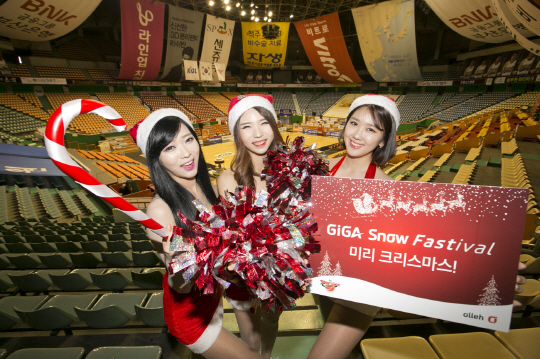 KT(회장 황창규)가 10일 국내 프로농구 사상 최초로, 인공 눈을 활용해 응원전을 펼치는 'GiGA 스노우 Fastival(fast + Festival)' 이벤트를 시행한다고 밝혔다.이벤트는 KT 소닉붐의 크리스마스 前 마지막 홈 경기인 이번 주 토요일(12일) 부산 사직 실내체육관에서 진행된다.