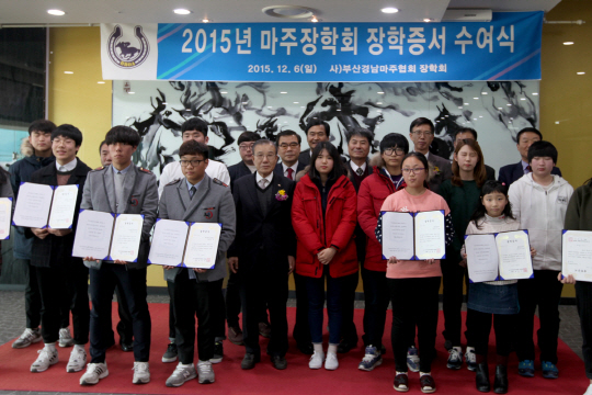 부산경남마주장학회는 지난 6일 렛츠런파크부산경남 관람대에서 지역 인재들을 대상으로 장학증서 수여식을 가졌다. 마주장학회는 어려운 가정형편 속에서도 열심히 공부하며 스스로 꿈과 희망을 키워가고 있는 모범학생 28명에게 총 2340만원의 장학금을 전달하며 격려했다.