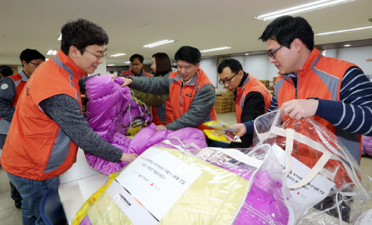 한국타이어의 사내 봉사단인 '동그라미 봉사단'이 추운 겨울을 맞아 독거노인들의 따뜻한 겨울나기를 위해 이불을 전달했다.