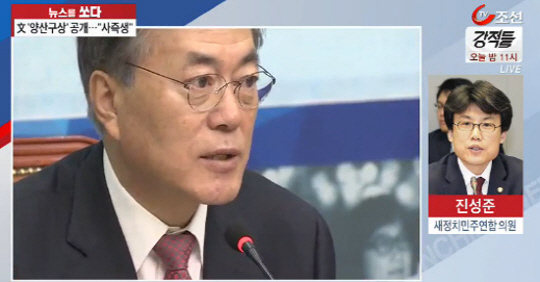 문 대표는 "야당이 무너지면 대한민국은 신독재정권 장기집권으로 갈지 모른다. 이런 정권을 연장시키는 것은 역사에 죄를 짓는 것"이라며 현 정부를 견제할 제1야당 책무를 부각시켰다.