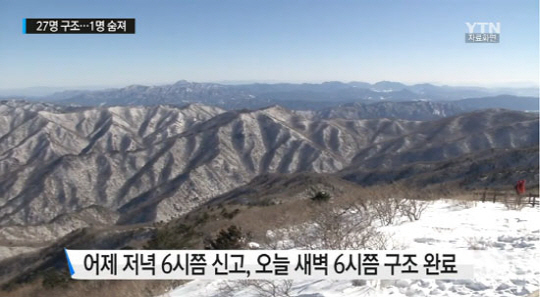 출동한 구조대원 29명은 당일 오후 10시 40분께 조난자들과 접촉했지만 당시 주변이 워낙 어둡고 눈이 쌓인 탓에 쉽게 산을 내려오지 못했다고 설명했다. 소방당국은 천천히 하산을 시도하면서 이날 오전 3시 10분께부터 6시께까지 등산객들을 차례로 전원 하산시켰다.